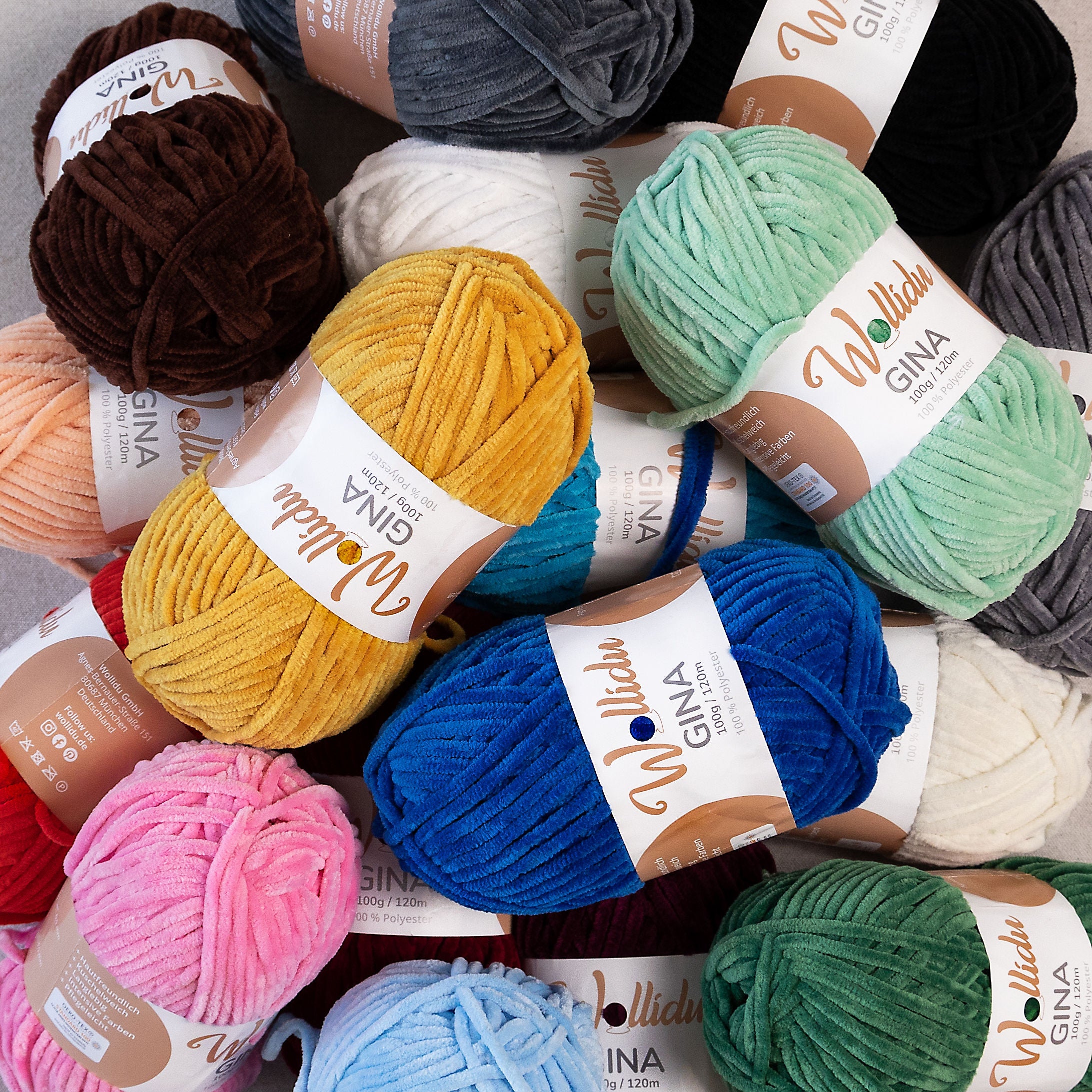 Gina 5er-Pack 100g – Flauschige Chenille-Wolle zum Häkeln & Stricken (OEKO-TEX®, 500g Gesamt)