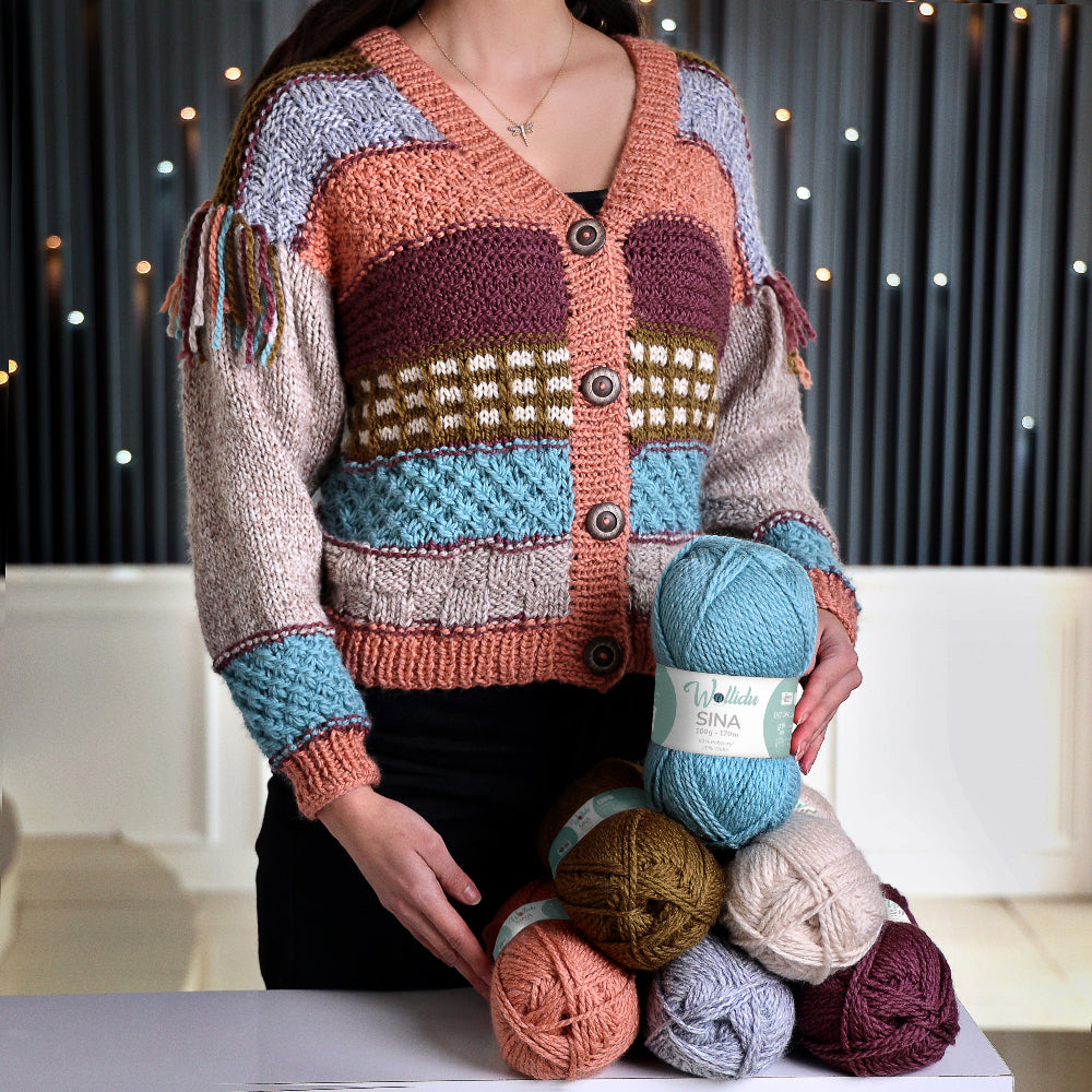 Ideal für Mützen, Schals, Loops, warme Pullover und Cardigans, eignet sich SINA sowohl für Anfänger:innen als auch für Fortgeschrittene. Die angenehme Maschenstruktur macht es leicht zu verarbeiten, und das Ergebnis fühlt sich flauschig, aber nicht schwer an.
